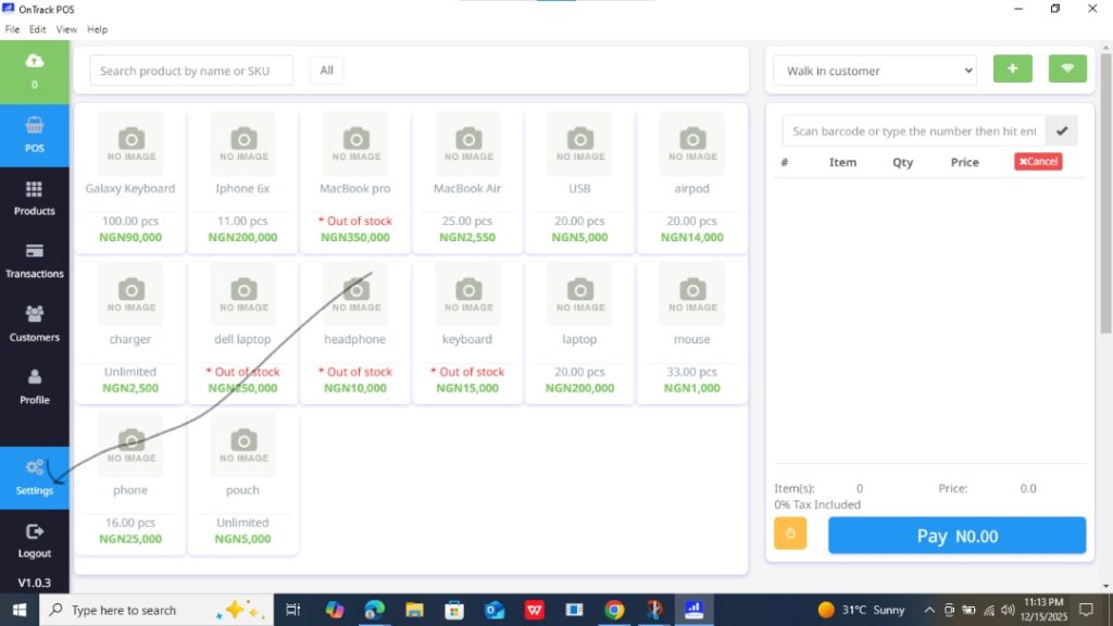 1. Open the OnTrack POS App on your desktop and log in to your profile.
