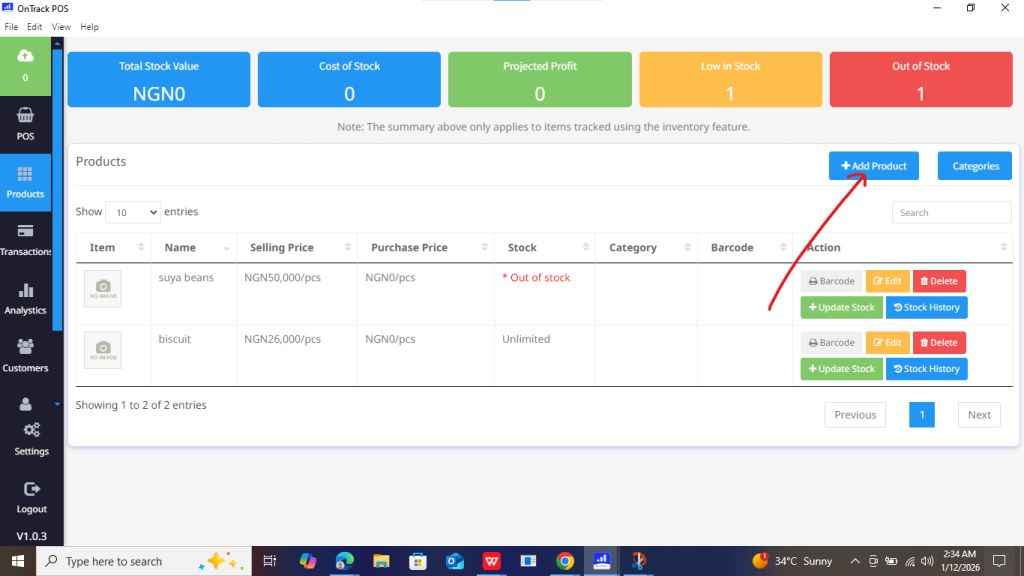 3. Click on the Add Product button from the upper right-hand areas of the page. This will open the product form.