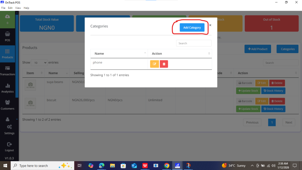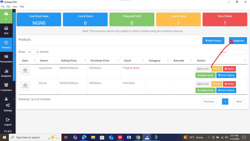 1. In the Products section, click Categories. This will open the list of available categories (if there is/are any).