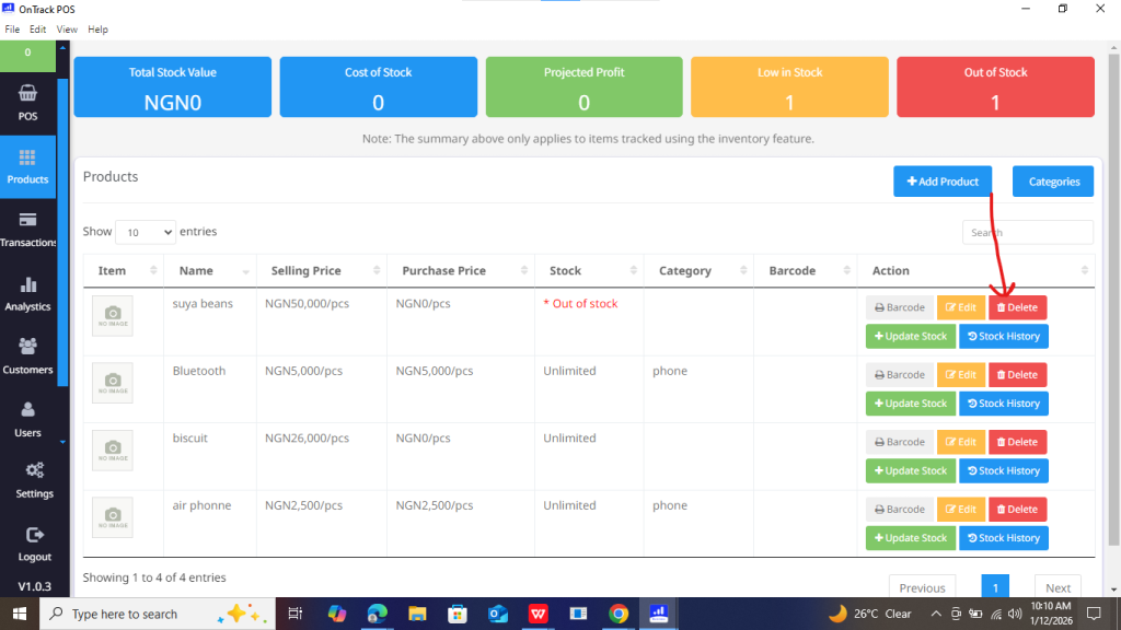 How to delete a sale in OnTrack Desktop