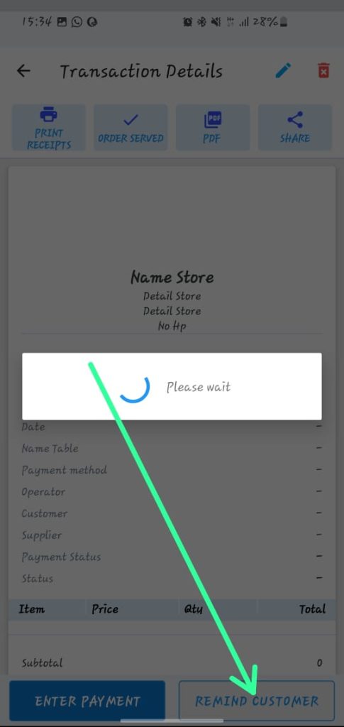 4. Click on the “Remind Customer” button, located at the bottom down left of the page.